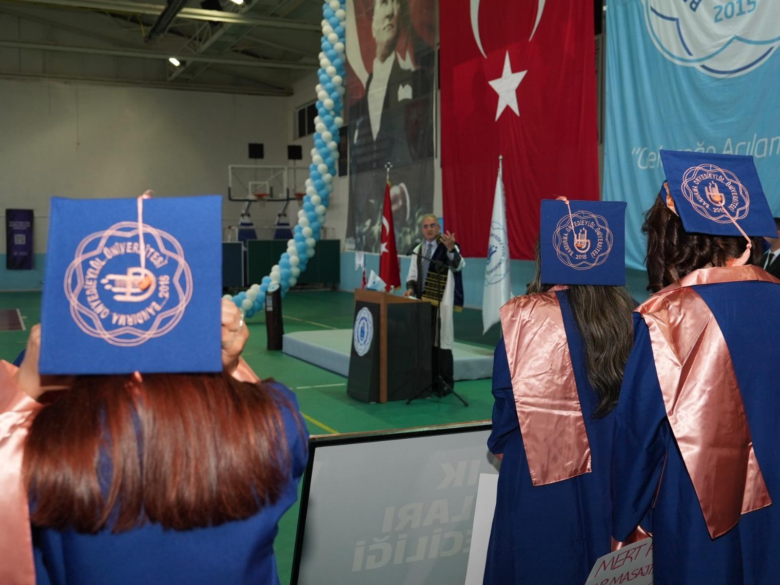 Our graduation ceremony, which was held with great enthusiasm, ended with our graduates throwing their caps into the air. This beautiful moment when hundreds of caps floated in the air was immortalized with photographs and video recordings. We congratulate our dear graduates who have successfully completed their departments and programs and will begin their professional lives, and wish them everything they want.