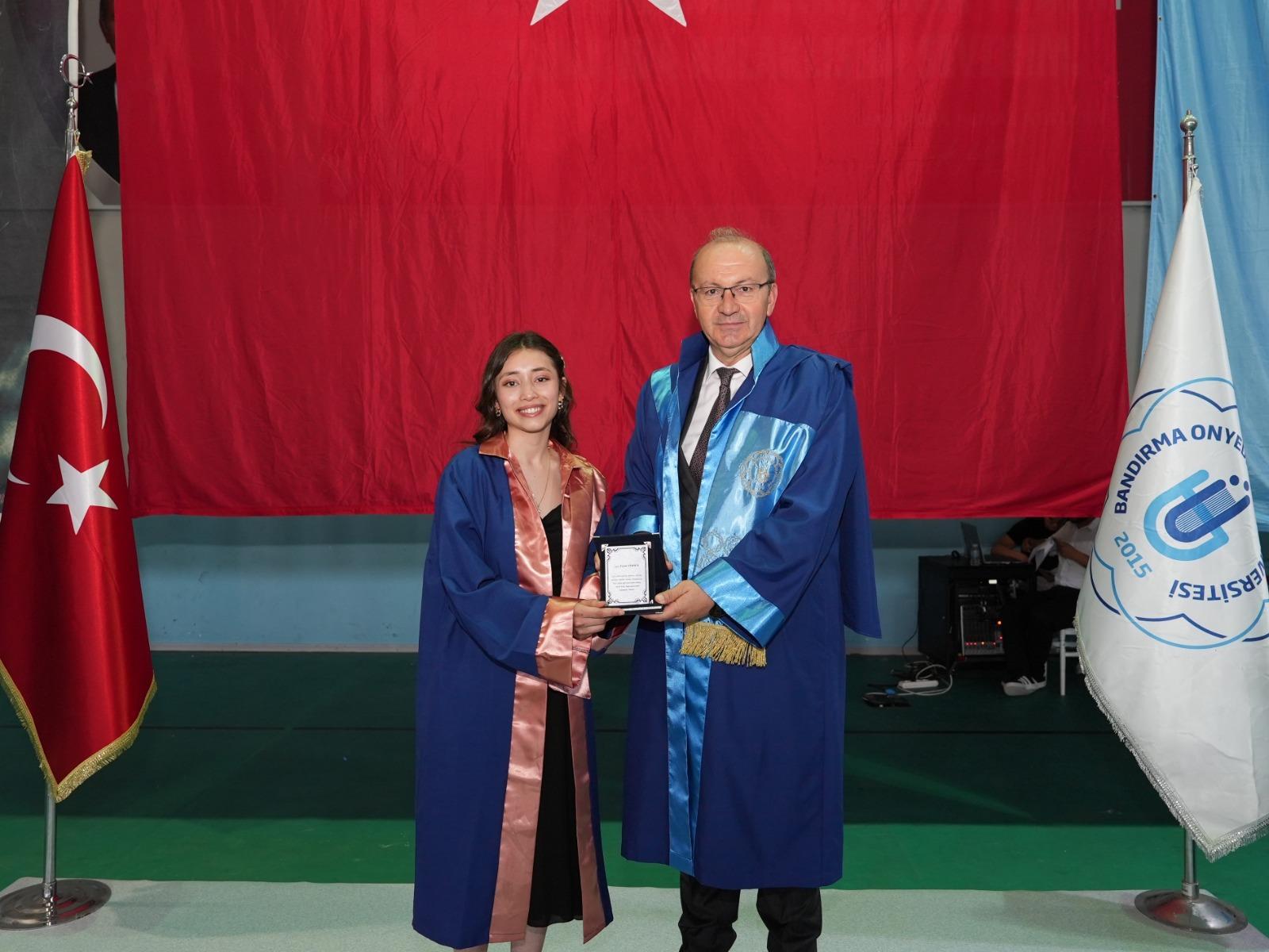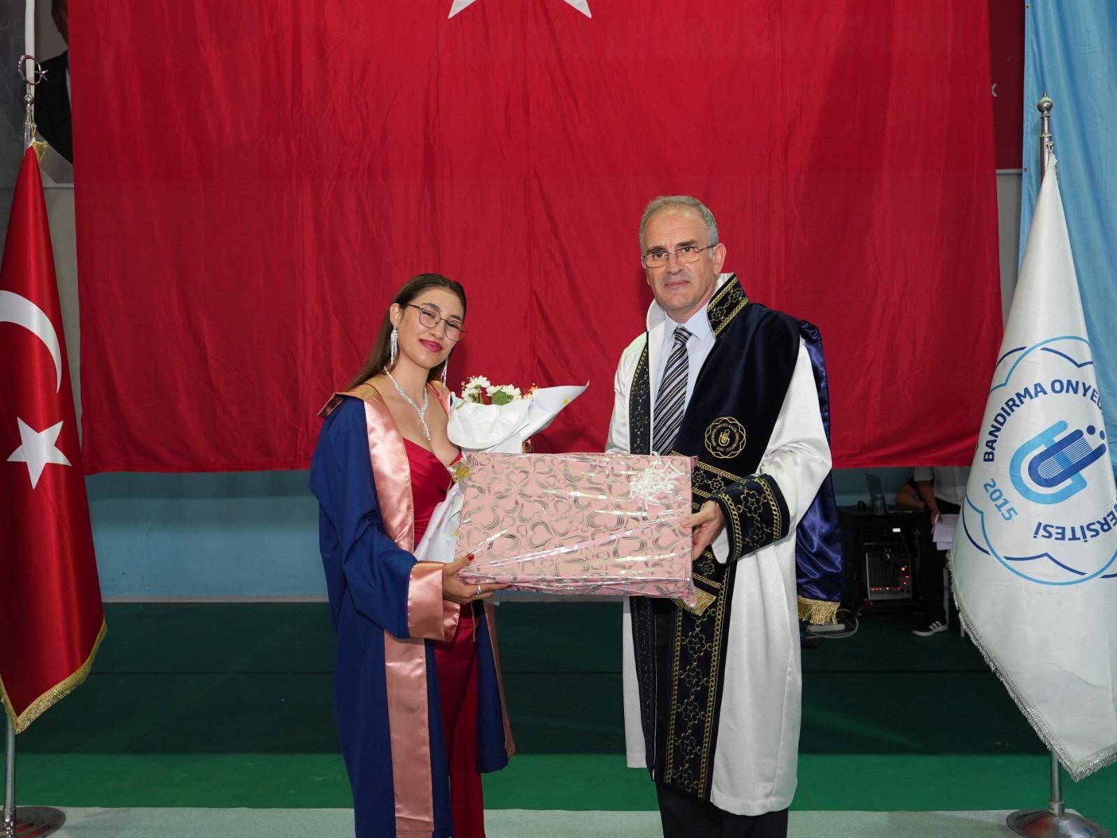 The program then moved on to the presentation ceremony of certificates of achievement and awards to our students who were ranked. Our students who graduated from our university with honors received their certificates of achievement and awards from our Rector Prof. Dr. İsmail Boz, Vice Rector Prof. Dr. Mehmet Emin Erçakar, Secretary General Cihangir Boz and protocol members. After the certificates of achievement and awards were presented, our Vocational School Director Assoc. Prof. Dr. Ufuk Bingöl and our academic staff presented our students with graduation certificates.