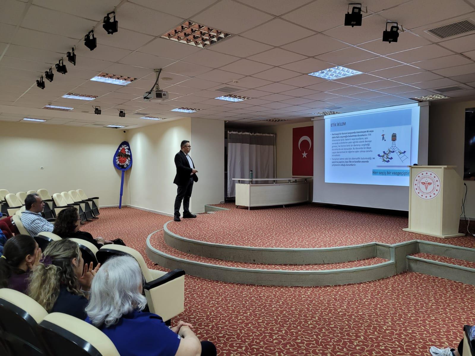 Fakültemiz Tıp Tarihi ve Etik Anabilim Dalı Başkanı Dr. Öğr. Üyesi Özgür KUŞ tarafından 25-31 Mayıs Etik Haftası kapsamında Bandırma Eğitim ve Araştırma Hastanesi çalışanlarına ''Kamu Yönetiminde Etik ve Etik Davranış İlkeleri'' konulu eğitim verilmiştir.